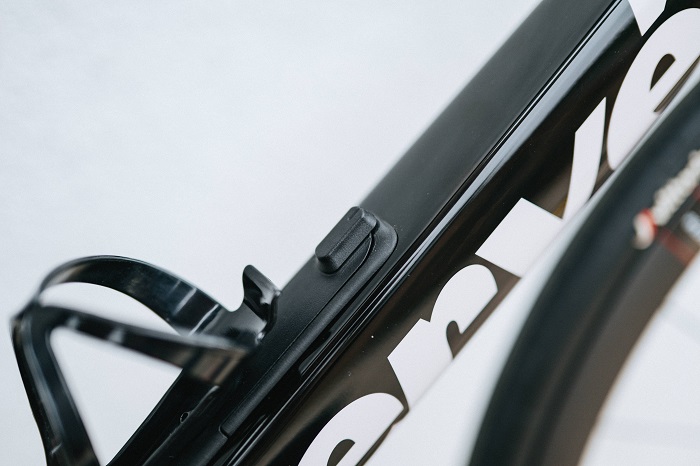 Nouveauté de la dernière version de ce modèle, le rangement dans le cadre est conçu pour y accueillir une chambre à air, un petit multi-outil et une « cartouche » de CO2. La trappe est facilement amovible, même avec des gants – il suffit de basculer le levier de blocage et de tirer.