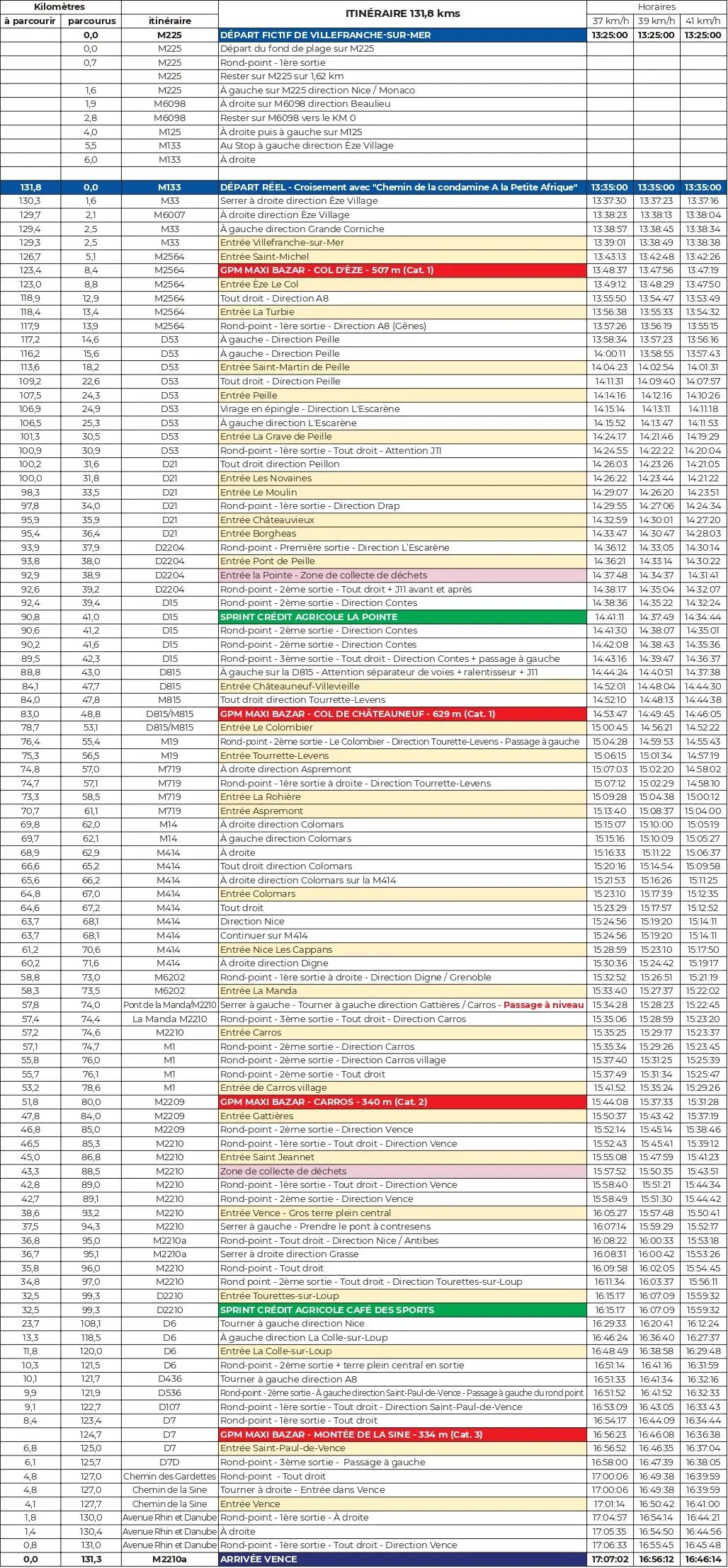 Étape 1 – Samedi 22 février – Contes / Gourdon – 162,4 km