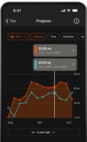 => Nouveauté : Le graphique de résumé des progrès inclut désormais un mode de comparaison permettant aux athlètes de confronter leurs activités récentes à différentes périodes d’entraînement passées. Cette fonctionnalité permet d’approfondir l’analyse et de mieux comprendre les tendances de performance.