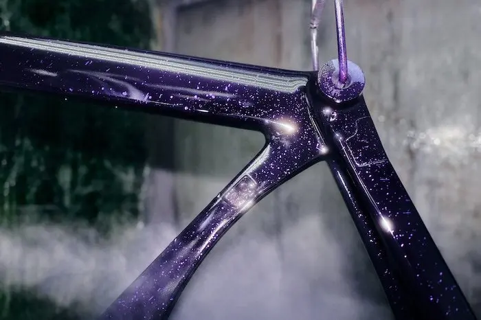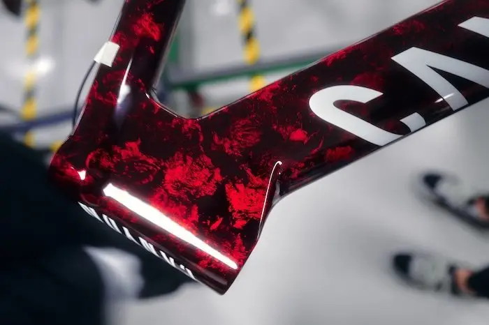 Mélangeant des pigments spéciaux et des autocollants irisés qui changent d’apparence lorsque le vélo reflète la lumière, les designs Fabrio de Canyon semblent danser sur le cadre.