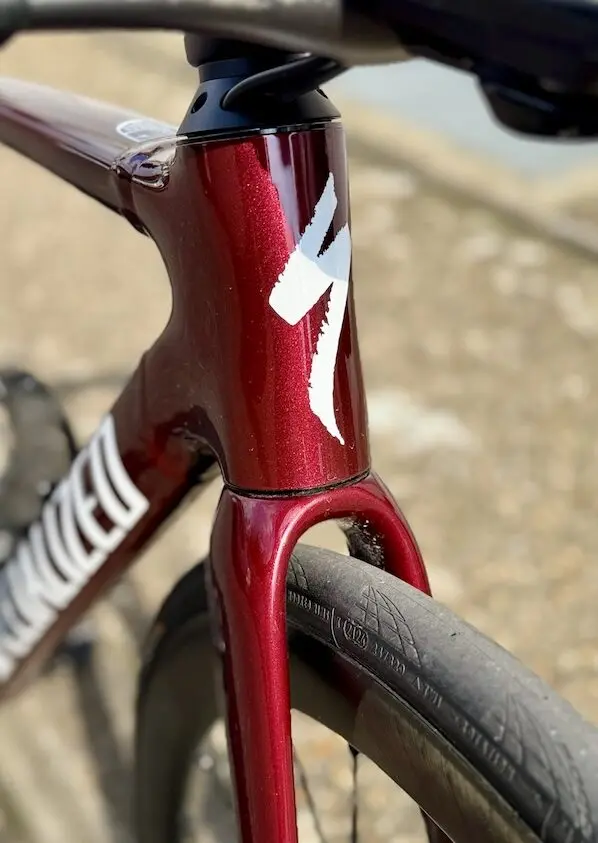 Mais de mon point de vue, le seul grief que l’on puisse réellement faire à l’Allez Sprint en termes d’harmonie générale concerne la jonction entre le sommet du jeu de direction et la fixation de la potence.