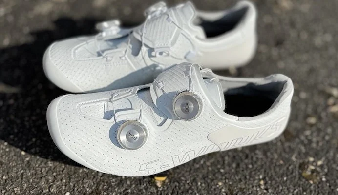 Pour ceux qui s’inquiètent du prix très élevé des chaussures, ou encore de leur couleur blanche, notons que l’entretien de l’empeigne est facile en cas de salissure, avec un coup d’éponge humide ou de lingette nettoyante. Les précédents modèles de chaussures Specialized ont d’ailleurs démontré en général leur durabilité, même sur le plan esthétique.