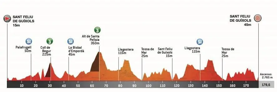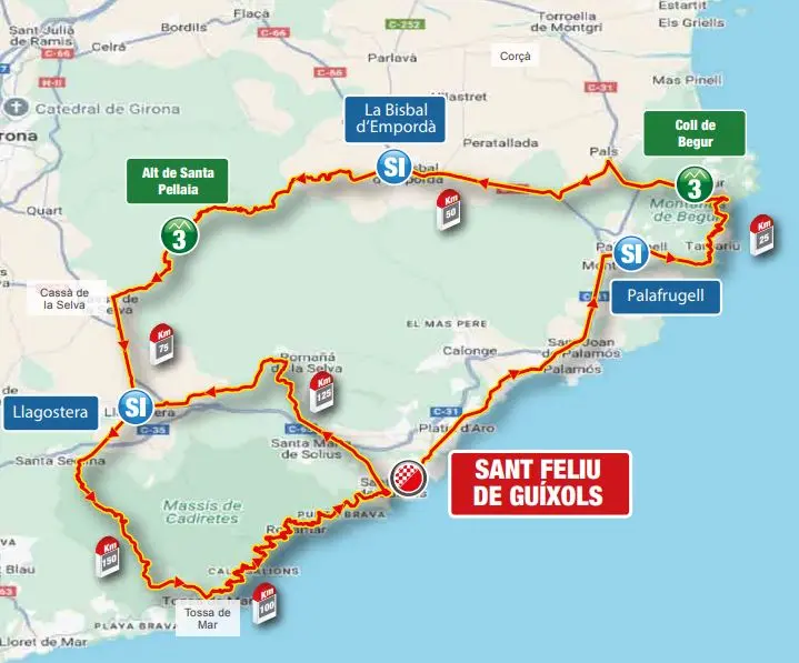 Étape 1 – Lundi 24 mars – Sant Feliu de Guíxols – Sant Feliu de Guíxols (178,3 km, 2 765 m D+)