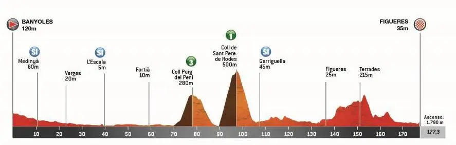 Étape 2 – Mardi 25 mars – Banyoles – Figueres (177,3 km, 1 790 m D+)