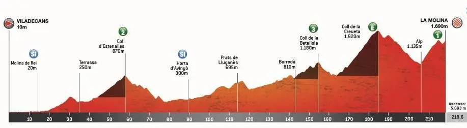 Étape 3 – Mercredi 26 mars – Viladecans The Style Outlets – La Molina (218,6 km, 5 093 m D+)
