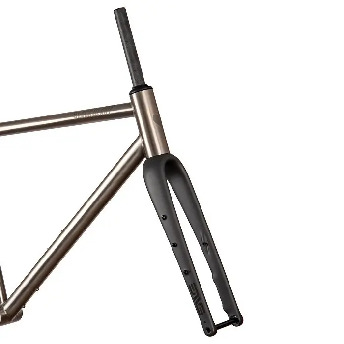 Le cadre Gravel Ti est équipé d’une patte de dérailleur arrière SRAM UDH, d’un boîtier de pédalier T47 et d’une tige de selle ronde de 31,6 mm et offre de nombreuses options au niveau des composants pour personnaliser son propre vélo. Le cadre est équipé d’une fourche ENVE In-Route Gravel en carbone et d’un jeu de direction FSA ACR. Les clients peuvent ainsi choisir un ensemble potence – cintre standard non intégré ou opter pour une potence-cintre monobloc BlackHeart en carbone intégrée ou un ensemble jeu de direction et potence-cintre ENVE In-Route assorti à la fourche.