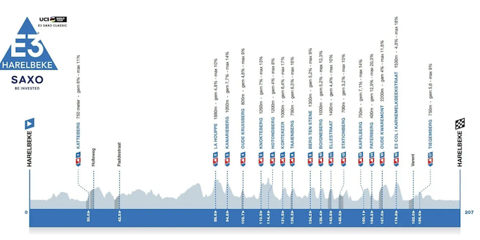 Le GP E3 (ou officiellement E3 Saxo Bank Classic) 2025 se déroule ce vendredi 28 mars autour de Harelbeke en Belgique. Cette 67e édition de la course World Tour marque le début de la fameuse semaine flandrienne, qui se conclura le 13 avril avec Paris-Roubaix. Véritable répétition du Tour de Flandres avec ses 17 monts à gravir, l’E3 Saxo Classic accueille de nombreux coureurs de renom, comme le vainqueur sortant Mathieu van der Poel (Alpecin-Deceuninck), mais aussi Mads Pedersen (Lidl-Trek), Wout van Aert et Matteo Jorgenson (Visma – Lease a Bike), ou encore Filippo Ganna (INEOS Grenadiers). Retrouvez le parcours et la liste des engagés.