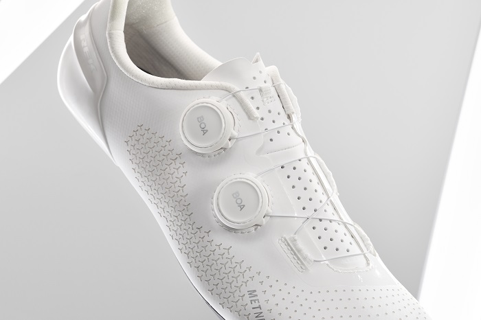 La technologie METNET exclusive de Trek est un tissu révolutionnaire qui se conforme au pied du coureur grâce à un étirement et une compression étudiés. La flexion et le soutien du tissu permettent d’obtenir une chaussure qui s’ajuste à une plus grande variété de formes de pieds, offrant ainsi une sensation de personnalisation dès la sortie de la boîte. METNET a fait ses premiers pas sur les routes l’été dernier, s’attirant rapidement les éloges des coureurs de Lidl-Trek Mads Pedersen, Lizzie Deignan et Giulio Ciccone.