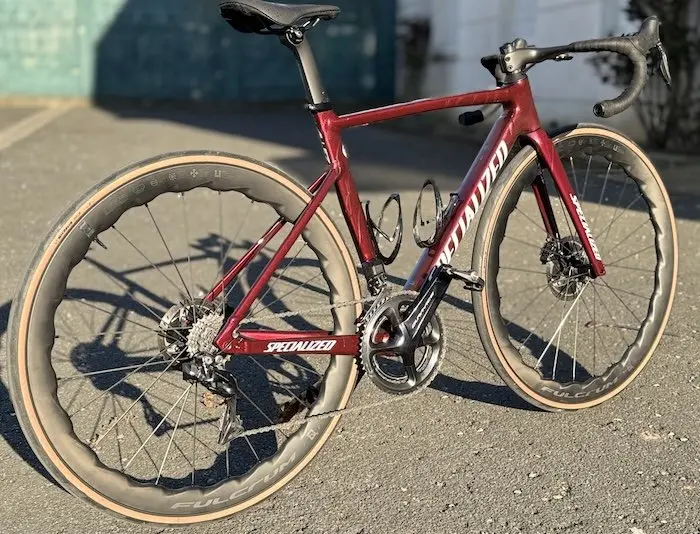 Cela se traduit par un peu moins de réactivité lors des relances et des changements de rythme. Sur des parcours habituels, c’est sensible. Heureusement, les Fulcrum Sharq font preuve de la rigidité suffisante pour que le vélo conserve ses caractéristiques habituelles. Monter en force ou sprinter énergiquement ne pose jamais le moindre problème de comportement. Mais les Sharq ne sont pas trop dures pour autant et elles restent suffisamment dynamiques pour qu’on n’ait pas l’impression de buter sur la raideur du vélo.