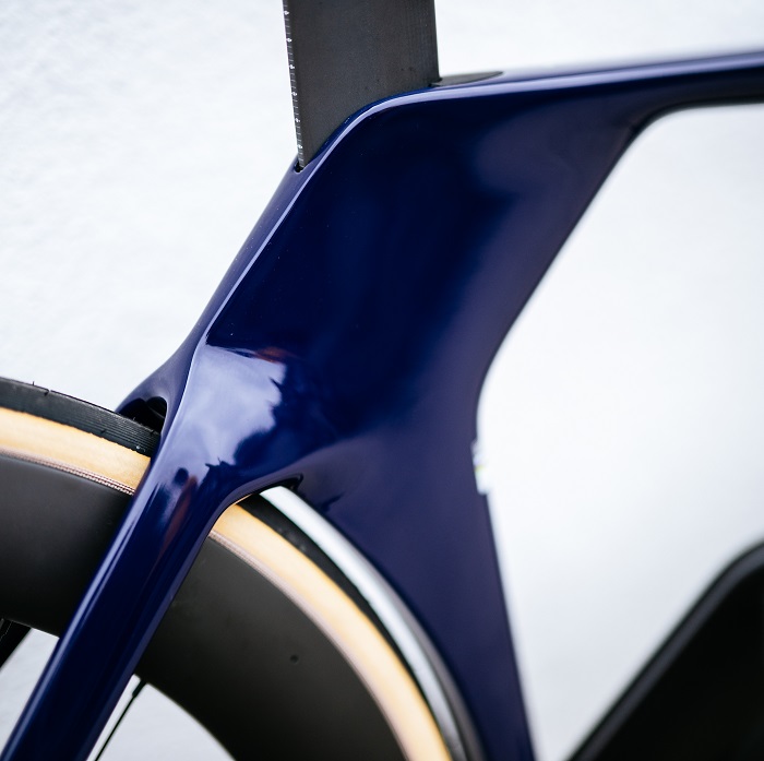 Le nouveau cadre du P5 est plus aérodynamique d’environ un watt que le modèle précédent et peut accueillir des pneus de 34 mm. Cela signifie plus de place pour les nouvelles roues Reserve 77/88 et les pneus Vittoria de 29 mm, ce qui permet d’économiser environ 4 watts par rapport à l’ensemble Reserve/Vittoria précédent, pour une économie totale d’environ 5 watts.