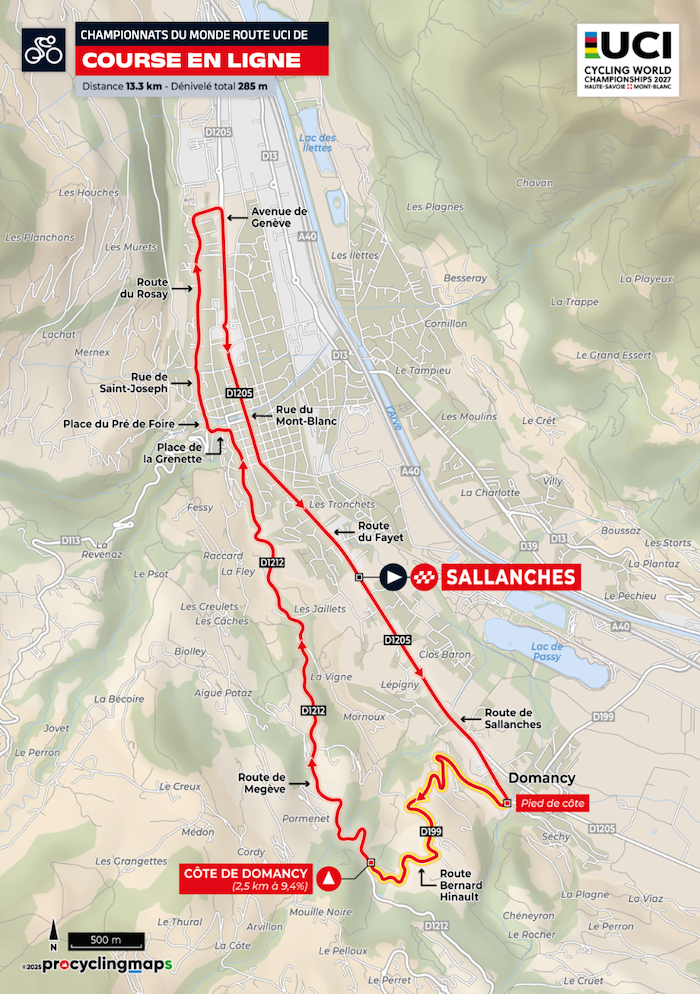 Sallanches sera un site clé de la compétition, mais l’ensemble de la Haute-Savoie sera mobilisé avec 12 sites de compétition, principalement regroupés autour d’un pôle central pour faciliter l’accueil des athlètes, délégations et médias. Le cadre naturel, avec le Mont-Blanc, des lacs et des paysages variés, offrira un décor unique. Un passage par le vélodrome olympique de Saint-Quentin-en-Yvelines est également prévu pour les épreuves sur piste.