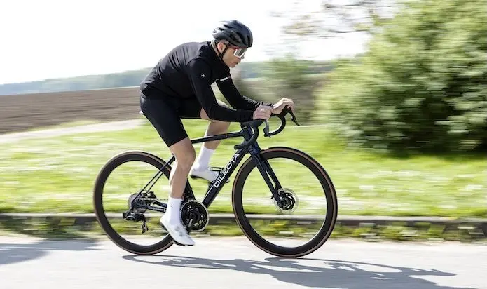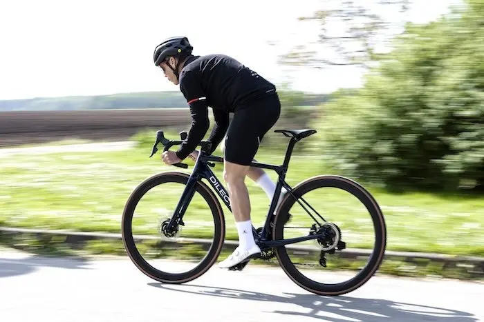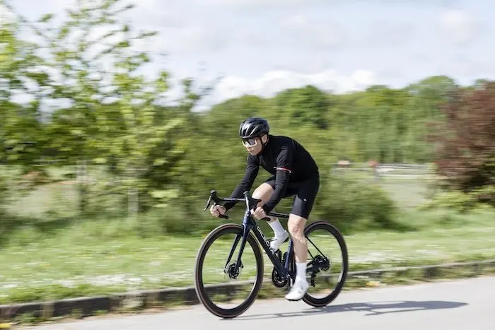 Notre vélo de test, équipé d’un groupe SRAM Force AXS, de roues Corima R45 et d’un cockpit Dilecta, est vendu 6 590 €, pour un poids de 7,5 kg en taille S. Ce rapport prix/poids est compétitif, comparable aux meilleures offres du marché, comme celles d’Origine ou de Canyon.