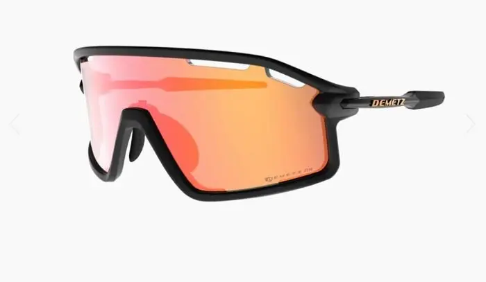 Parmi tous les produits proposés, le modèle SUIT a été sélectionné. Il s’agit de lunettes équipés d’un écran de catégorie 3, indiqué par la marque comme filtrant de 83 à 92% de la luminosité solaire. Toujours selon Demetz, cette catégorie de protection est idéale pour la plupart des situations de fort ensoleillement en offrant une protection adéquate contre le rayonnement solaire et l’éblouissement dans la plupart des activités de plein air dont évidemment la pratique du cyclisme.