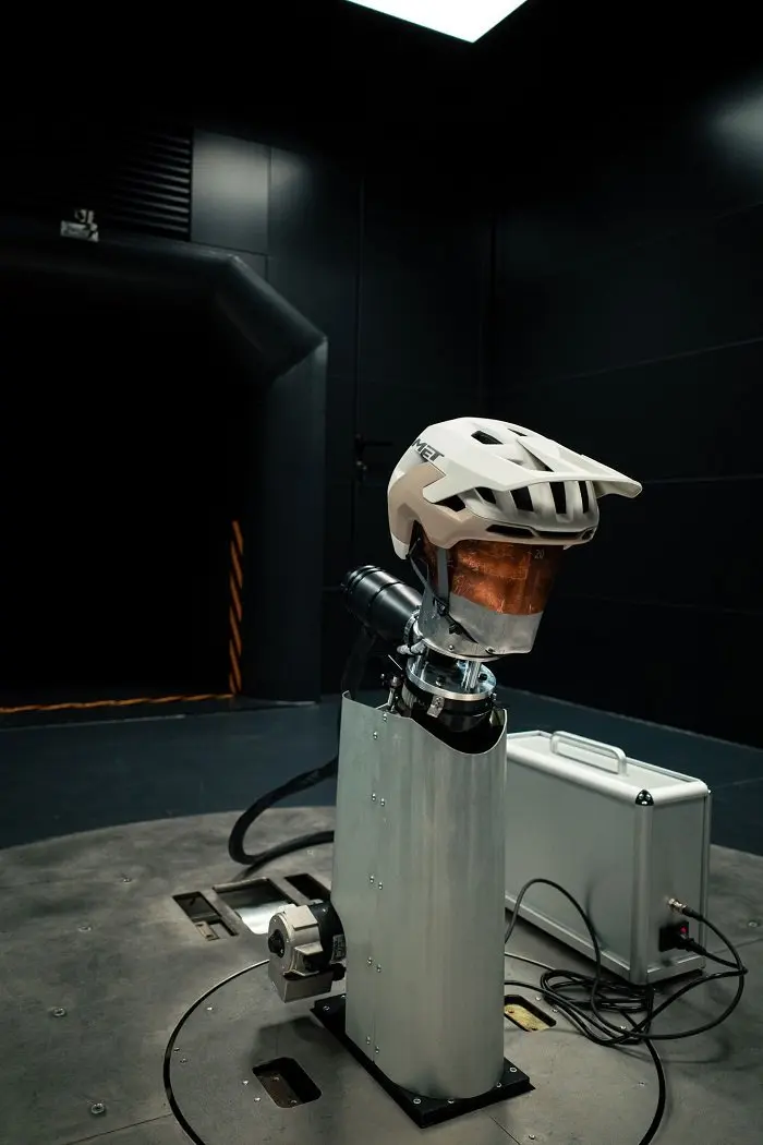 « Le Tube » est doté d’une double configuration, permettant de passer d’un test avec une fausse tête uniquement à un test avec le vélo et le cycliste, ce qui permet de multiples scénarios de test. Cela permet d’évaluer non seulement la forme du casque, mais aussi son interaction avec le cycliste, c’est-à-dire le système dans son ensemble.