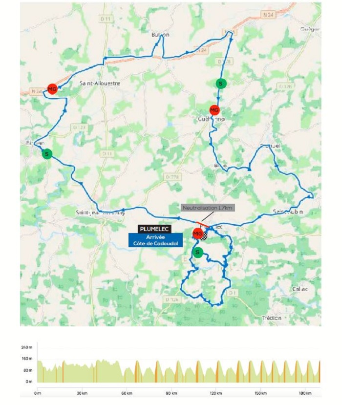 Le GP du Morbihan 2025 se déroule ce samedi 10 mai. Au programme : 190 km autour de Plumelec, dont 66,9 kilomètres en ligne puis cinq grands tours et six petits tours du fameux circuit final avec la célèbre côte de Cadoudal, au sommet de laquelle sera jugée l’arrivée. Benoît Cosnefroy sera un candidat à sa propre succession mais il devra se méfier de coureurs dont le profil convient aux qualités comme Biniam Girmay ou Alberto Bettiol. Retrouvez toutes les infos sur le GP du Morbihan 2025.