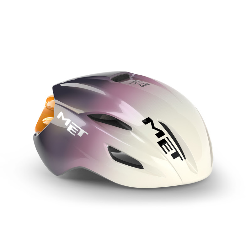 L’édition UAE Team ADQ mise sur un contraste vibrant. Un dégradé délicat passe du blanc pur à un violet expressif, tandis qu’une queue orange lumineuse apporte énergie et fluidité au design. Ce casque allie élégance et dynamisme, reflétant l’esprit de l’équipe féminine.