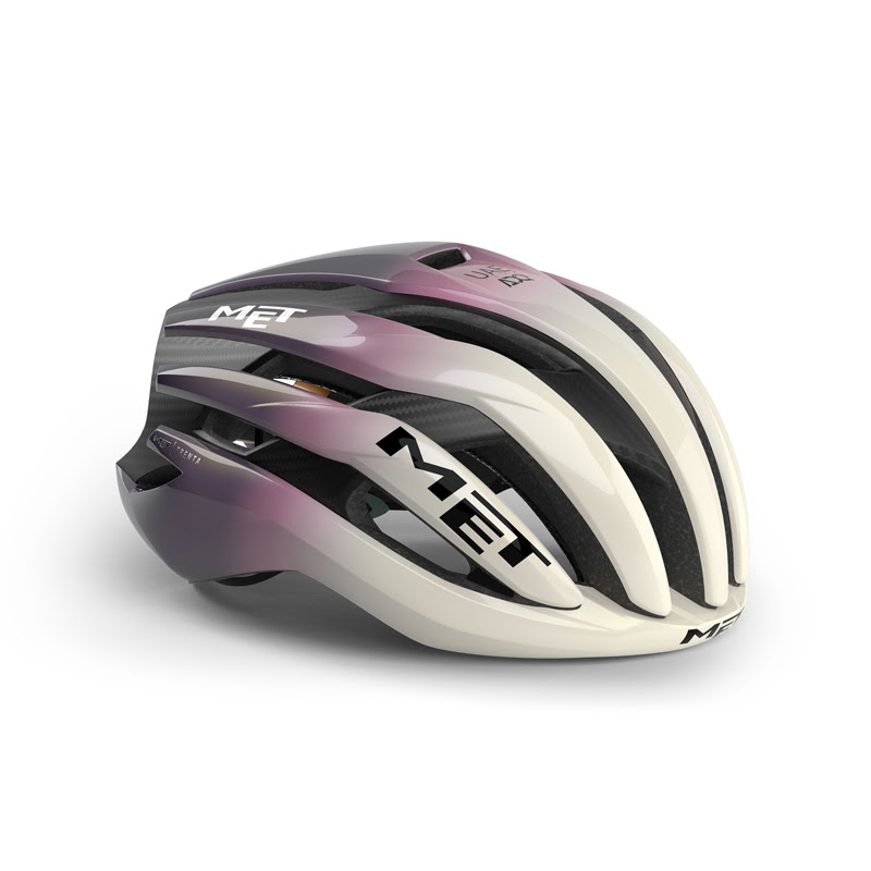 L’édition UAE Team Emirates XRG se distingue par son esthétique épurée et percutante. Un noir fumé s’éclaircit progressivement vers un blanc éclatant à l’avant, avant de s’assombrir à nouveau à l’arrière avec un effet tourbillonnant. Une touche finale de rouge métallisé à l’arrière ajoute une note d’intensité et de caractère. Sur le MET Trenta 3K Carbon, ce dégradé s’harmonise avec la texture visible du carbone, créant un contraste subtil entre matière brute et couleur.