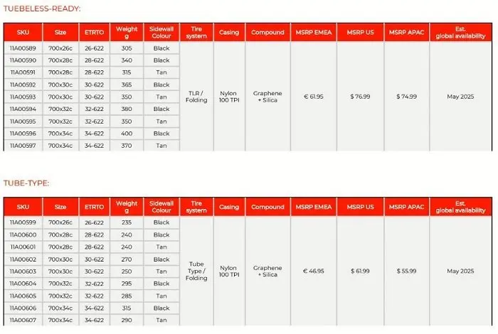 Rubino est disponible en versions TLR et à chambre à air depuis début mai 2025.