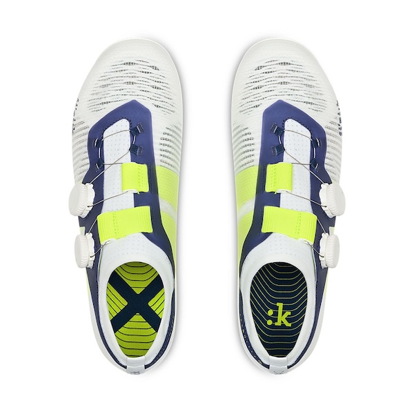 La tige utilise le tissu Aeroweave PRO de Fizik, combiné à une maille translucide pour une respirabilité accrue tout en maintenant robustesse et légèreté. Une bottine en Airprene perforé enveloppe le pied pour un ajustement sans pression, tandis que le système Dual-Dial Li2 BOA® permet des réglages précis au niveau du cou-de-pied et du milieu du pied.