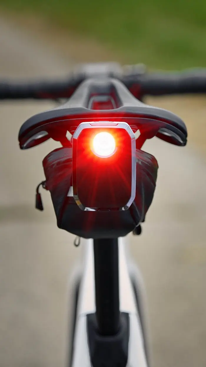 Un feu arrière rechargeable via USB, compact et puissant, utile non seulement lorsque la luminosité est faible, mais également visible de jour à une distance de 2 km.
