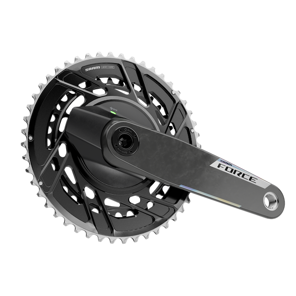 Mais surtout, le pédalier Force AXS est disponible en différentes versions, que ce soit en double comme dans le cadre de ce test, avec capteur de puissance Quarq (+ 400 €), en mono plateau (avec plateau plein de 44 à 50 dents), en mono et capteur de puissance, ou en version XPLR (mono plateau de 38 à 46 dents).