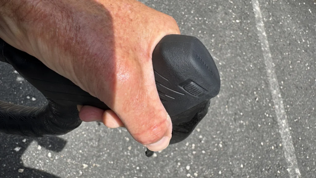 Seul bémol : comme sur le Red, il reste une partie un peu contondante sous la poignée, susceptible de gêner un peu lorsqu’on l’agrippe selon la position des doigts. D’autre part, les boutons bonus semblent hyper sensibles. En fonction de la position du pouce sur la poignée, il est possible de les actionner sans le vouloir. Ce n’est pas grave quand il permettent de changer une page de menu sur le compteur, mais c’est un peu plus embêtant quand ils sont paramétrés pour changer de vitesse.