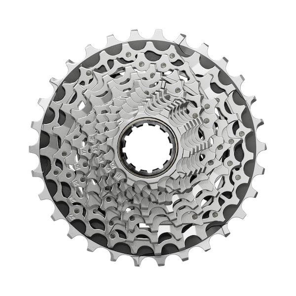SRAM poursuit avec la technologie nommée X-Range, conçue pour étendre la plage de développements sur la cassette et lancée depuis que la marque propose ses groupes à 12 vitesses. Tout comme pour les groupes Red et Rival, les quatre cassettes Force proposées ont toutes un premier pignon de 10 dents, et assurent un écart d’une dent sur les cinq premiers pignons au moins pour les cassettes 10-28, 10-30 et 10-33. La cassette 10-28 dispose même des sept premiers pignons qui se suivent (10 à 17), alors que la 10-36 ne profite que des quatre premiers. La polyvalence extrême d’un tel écart entre le petit et le grand pignon est à ce prix. Des cassettes toujours prévues pour être montées sur un corps de cassette spécifique SRAM XDR.