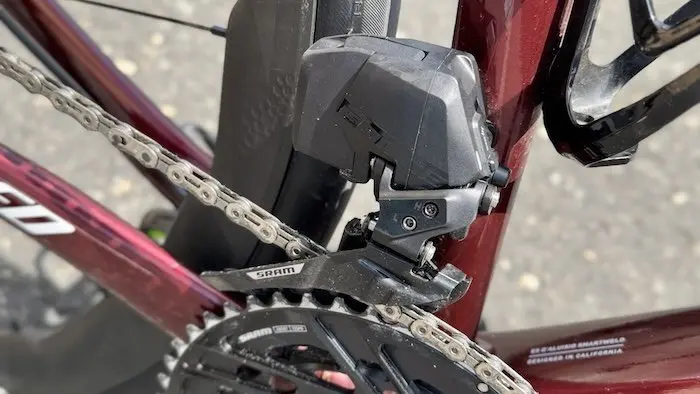Le dérailleur avant gagne quant à lui nettement en rapidité et en efficacité par rapport à la version précédente. Il est honnêtement très difficile de faire la différence sur la route avec le SRAM Red.