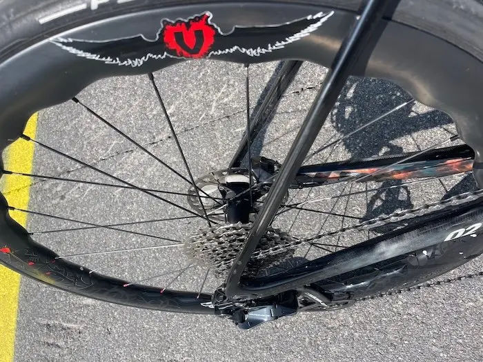 Leur mise en œuvre ne s’improvise pas. Loïc, le responsable de VDZ, a dû adapter son montage, sa tension, son centrage, et surtout faire preuve de maîtrise technique pour garantir une fiabilité totale. Le résultat ? Une roue vive, précise, qui garde son calme dans les descentes à haute vitesse tout en s’exprimant au mieux dans les cols et vous pousse à tomber une dent. Malheureusement cela a ses limites, et la gravité vous ramène à la raison