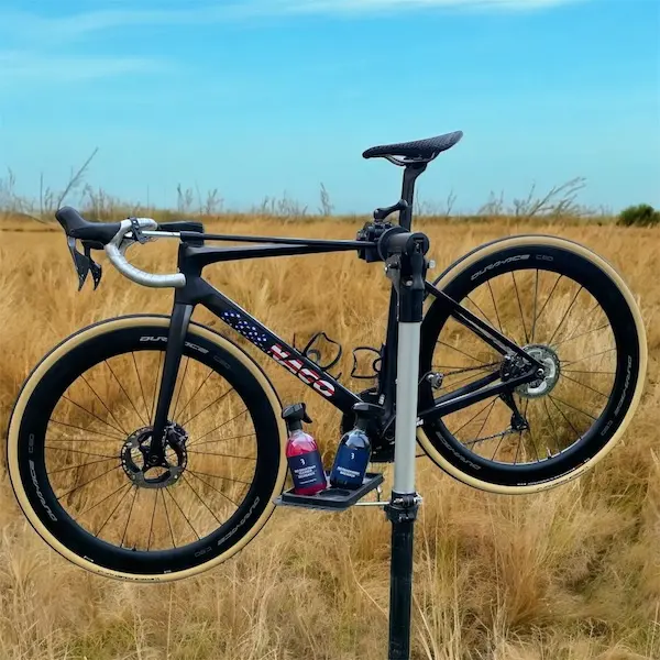 Ce produit-là, on l’a utilisé sur un cadre carbone (mat), des roues alu, des flancs de pneu beiges, et un cintre recouvert de ruban microtex. Le BioReadyWash agit plus comme un shampooing vélo : on le vaporise, on laisse agir, puis on passe une éponge douce ou un chiffon microfibre. On rince (ou pas, si l’usage est léger).