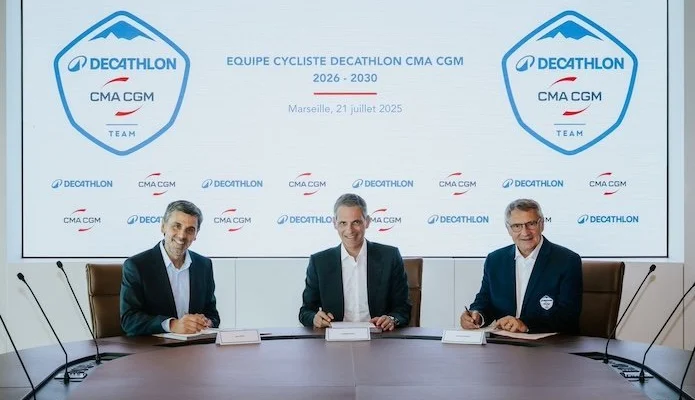 Nouveau cap pour l’équipe cycliste Decathlon ! À partir du 1er janvier 2026, le géant du transport maritime CMA CGM devient le partenaire officiel de la formation, prenant la relève d’AG2R La Mondiale.