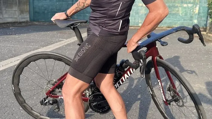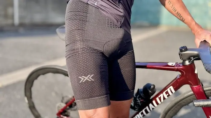 Issu de la gamme Xceed de la marque suisse X-Bionic, ce cuissard se démarque par ses technologies innovantes et son design soigneusement conçu pour répondre aux exigences des cyclistes, particulièrement dans des conditions de forte chaleur. Le textile « tissé » utilisé surprend au premier abord par son apparente épaisseur. Cependant, grâce à la coupe optimisée du cuissard et à son effet compressif léger et bien réparti, cette impression s’estompe dès les premiers coups de pédale.