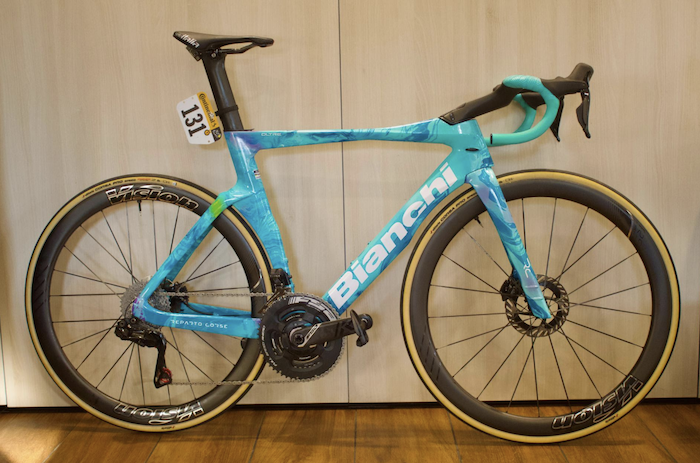 Le nouveau coloris « Officina Bianchi » a fait ses débuts au Tour de France avec l’Oltre RC de Vauquelin