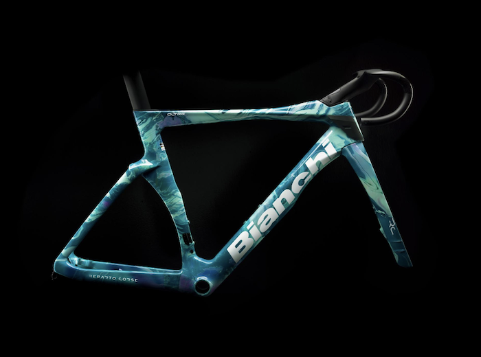 Le nouveau coloris « Officina Bianchi » a fait ses débuts au Tour de France avec l’Oltre RC de Vauquelin