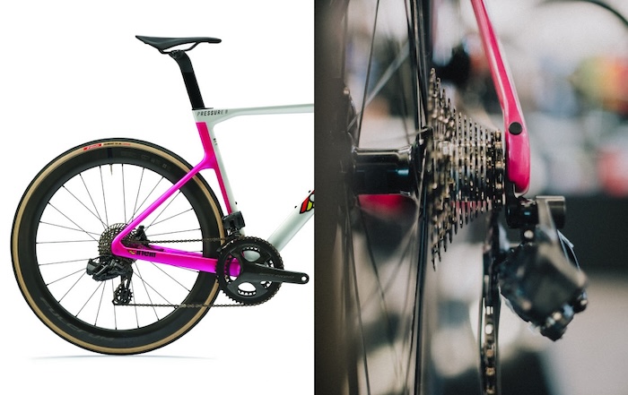 Le nouveau Cinelli Pressure 2, plateforme de course la plus raffinée de la marque, bénéficie d’une refonte allégeant le cadre de 5 % et d’un dégagement accru pour des pneus jusqu’à 32 mm. Issu de recherches aérodynamiques et de retours cyclistes, il intègre une tige de selle optimisée pour une polyvalence sur diverses surfaces. Équipé du groupe Campagnolo Super Record 13, il offre des changements de vitesse réactifs, une transmission précise et une expérience compétitive fluide. Contact : cinelli-milano.com