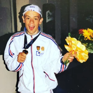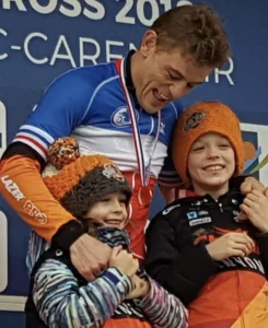 Il apprend vite à bricoler avec rien. « J’étais le seul avec un vélo sans vitesses, un mono-vitesse que le club m’avait prêté. Les autres gamins avaient déjà des cales-pieds, moi j’étais en pédales plates. Mais ça ne m’a pas empêché de m’éclater. » Son père rafistole les pneus pour les courses de cyclo-cross. Avec ses deux sœurs et son frère, il grandit dans une fratrie où les valeurs sont simples : partage équitable, solidarité. « Si on donne 1000 à toi, on donne 1000 à ton frère, 1000 à ta sœur. Donc fallait apprendre à se débrouiller. » Cette enfance modeste forge un trait indélébile : la débrouille comme moteur, et l’envie de prouver qu’avec peu, on peut faire beaucoup.