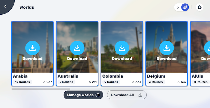Inspiré des paysages africains, le nouveau monde UCI propose des parcours fictifs pour une expérience visuelle époustouflante. Disponible lors d’événements spéciaux, il sera le théâtre des Championnats du Monde Esport Cyclisme UCI 2025. Préparez-vous à rouler dans un décor unique !