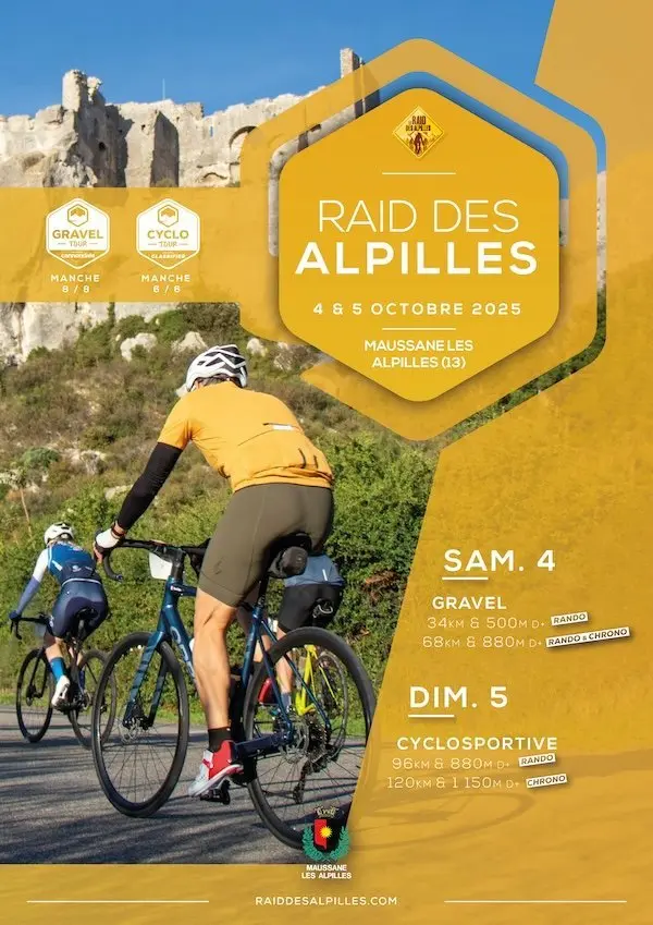 Rendez-vous ce week-end des 4 et 5 octobre à Maussane-les-Alpilles (13) pour une nouvelle édition du Raid des Alpilles ! Avec plus de 1 100 inscrits l’an dernier et des inscriptions qui s’envolent depuis l’ouverture, cet événement s’annonce comme une célébration incontournable pour clôturer les saisons du Gravel’Tour Cannondale et du Cyclo’Tour Classified.