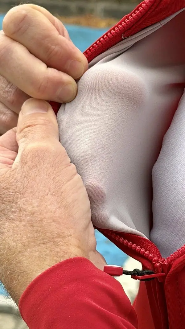 Cependant, l’absence d’imperméabilité se confirme : la déperlance DWR repousse les gouttes isolées, mais une pluie soutenue (testée 10 min sous une belle averse) imprègne le tissu en surface, sans pénétration profonde mais avec un inconfort croissant. Le col haut excelle contre les vents frontaux, limitant les infiltrations – un détail salvateur sur les grandes roues plates exposées. Globalement, la Do.Di.Ci excelle sous des conditions fraîches mais sèches, transformant les sorties intenses en expériences respirantes et dynamiques.