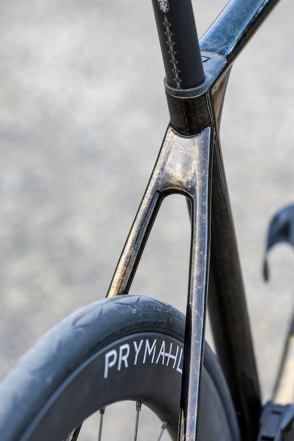 Comme tous les vélos de la gamme Origine, l’Axxome RR est peint et assemblé en France. Ainsi, grâce au configurateur sur le site Internet de la marque, le vélo peut être personnalisé de multiples façons, que ce soit pour les couleurs ou pour l’équipement. À partir de 8100 € et jusqu’à 10 520 € environ avec un groupe SRAM Red, de nouvelles roues Prymahl prototypes d’un poids de 1 295 g avec rayons carbone (dont nous vous reparlerons ultérieurement) le vélo s’affiche à un poids de 6,56 kg en taille M. Il est même possible de demander un pédalier en carbone THM Clavicula comme pour ce vélo de test, pour gagner 200 g environ tout en allégeant votre porte-monnaie de 1500 € supplémentaires. Franchement, compte tenu du prix de l’option et des contraintes liées à la fragilité de ce type de matériel, nous ne vous le conseillons pas.