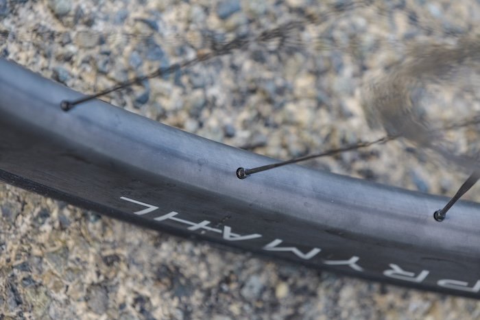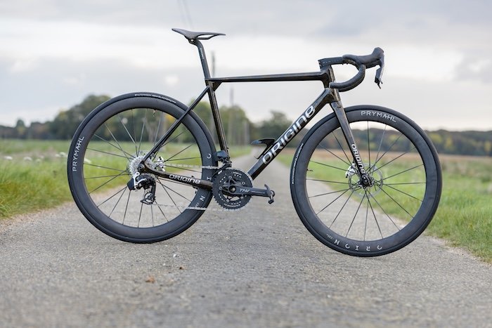 Comme tous les vélos de la gamme Origine, l’Axxome RR est peint et assemblé en France. Ainsi, grâce au configurateur sur le site Internet de la marque, le vélo peut être personnalisé de multiples façons, que ce soit pour les couleurs ou pour l’équipement. À partir de 8100 € et jusqu’à 10 520 € environ avec un groupe SRAM Red, de nouvelles roues Prymahl prototypes d’un poids de 1 295 g avec rayons carbone (dont nous vous reparlerons ultérieurement) le vélo s’affiche à un poids de 6,56 kg en taille M. Il est même possible de demander un pédalier en carbone THM Clavicula comme pour ce vélo de test, pour gagner 200 g environ tout en allégeant votre porte-monnaie de 1500 € supplémentaires. Franchement, compte tenu du prix de l’option et des contraintes liées à la fragilité de ce type de matériel, nous ne vous le conseillons pas.