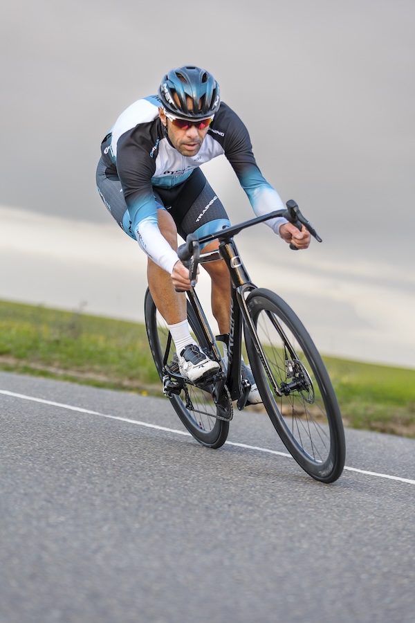 Les tubes non spécifiquement aérodynamiques limitent également les performances sur les parcours seulement légèrement vallonnés, où un vélo plus profilé pourrait prendre l’avantage. Avec l’équipement de ce modèle de test, le vélo semble également manquer un peu d’inertie, ce qui n’est pas un avantage pour maintenir aisément une vitesse de croisière au-delà de 40 km/h sur de longs bouts droits. L’Axxome RR trouve donc son terrain de prédilection dans les parcours très montagneux ou au moins qui imposent de fréquents changements de rythme, puisque sa légèreté et son rendement global font des merveilles.