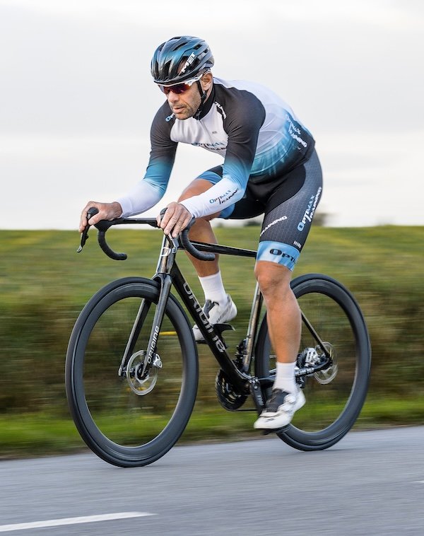 Lorsqu’on enfourche l’Origine Axxome RR, son caractère se révèle immédiatement. Grâce à son poids plume, ce vélo se montre vif et léger à la relance, offrant une réactivité très engageante dès les premières accélérations. En danseuse, il procure une sensation de légèreté unique, comme s’il disparaissait presque entre les jambes lors des changements de rythme, ce qui facilite les relances explosives sur les parcours exigeants.