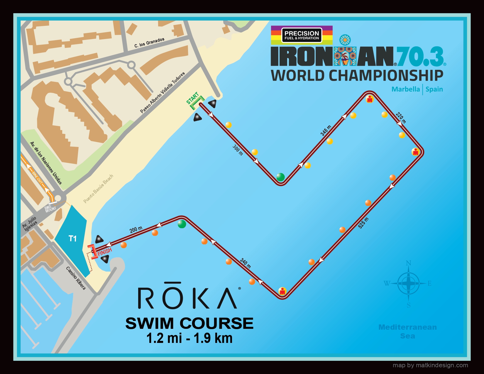 La carte du parcours natation de l’Ironman 70.3 Marbella World Championship 2025