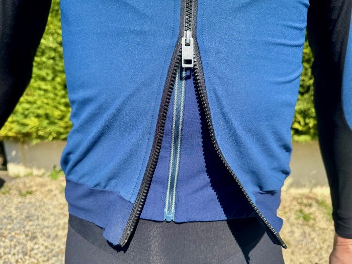 En enfilant le gilet, on remarque immédiatement que la coupe est légèrement plus compressive que la précédente version. Si vous êtes entre deux tailles, il faudra peut-être prévoir une taille de plus sur ce vêtement en particulier, notamment si vous en avez une utilisation « hivernale », c’est à dire en l’utilisant préférentiellement par dessus un maillot épais.