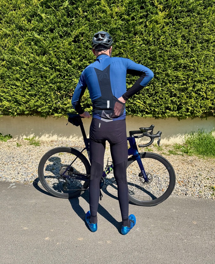 Pour parler de fourchette de température concernant cette tenue, il s’agit de démarrer à partir de 5°C pour le collant et 8°C pour le maillot, tandis que le gilet, de part sa définition de couche amovible peut couvrir toute une gamme de température. Dans tous les cas, ces produits ont été testés sur plusieurs mois : après avoir été mis à rude épreuve au printemps, ils ont été des compagnons fidèles de sorties à l’automne. Et de part la gamme de température visée, ils vont continuer à être utilisés durant les prochaines semaines, voire tout l’hiver selon la région de résidence et l’heure à laquelle il sera possible de rouler.
