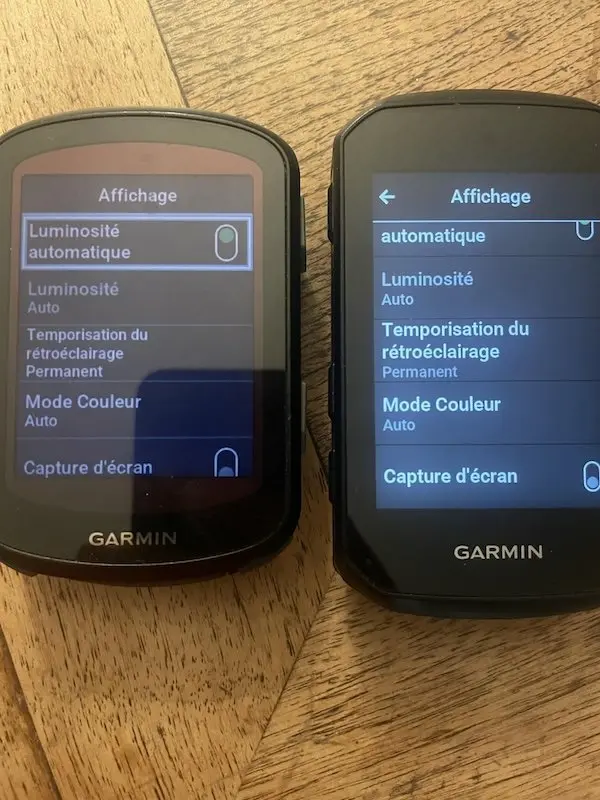 Le revers de la médaille, c’est que cet écran a un prix en énergie. Tant qu’on le laisse faire sa vie en mode auto, tout va bien pour les yeux, un peu moins pour la batterie. Si on décide de serrer la vis et de se limiter à 10 ou 20 % de luminosité pour sauver l’autonomie, on perd vraiment en confort : l’affichage devient nettement moins lisible, surtout dans les moments de transition, lever du jour, fin de journée, météo couverte. En clair, l’Edge 850 donne tout son potentiel visuel quand on le laisse consommer, et c’est logique… mais frustrant pour ceux qui visent les longues journées de selle.