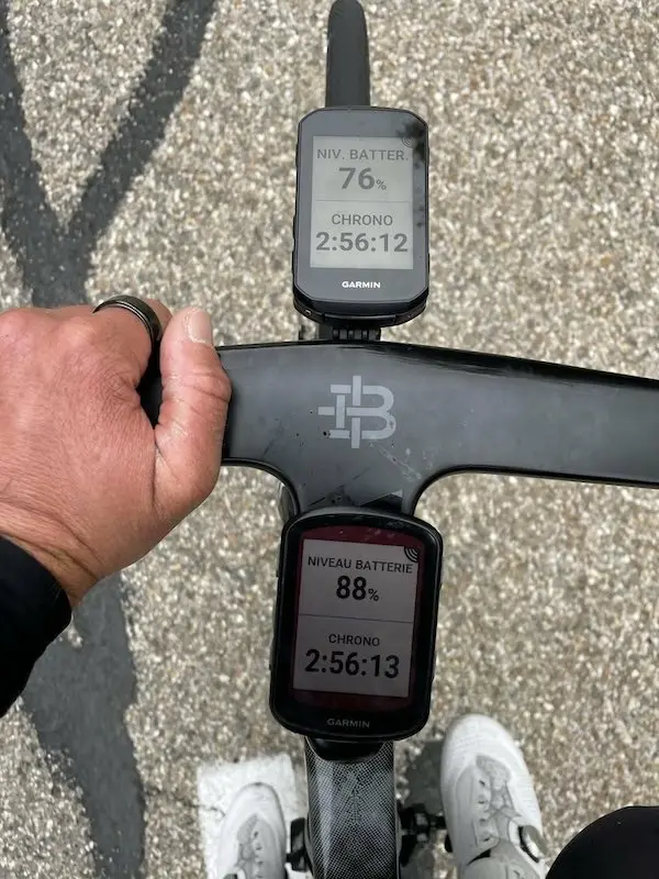 Sur le papier, 10 heures, ce n’est pas ridicule. Pour beaucoup de cyclistes, c’est largement suffisant pour couvrir la grande sortie du week-end. Le problème, c’est le contexte : j’utilisais jusqu’ici un Edge 540 Solar, qui offrait une vraie sérénité sur ce point. Avec lui, je pouvais enchaîner de longues sorties en montagne, voire plusieurs jours, en profitant des apports solaires pour prolonger la fête. Avec l’Edge 850, cette tranquillité disparaît. On se surprend à surveiller le pourcentage restant, à toucher à la luminosité, à couper certaines fonctions pour être sûr de rentrer avec un compteur encore vivant et de pouvoir télécharger sa sortie.