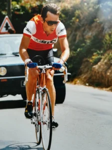 Jean-Loup, c’est le type qui a connu les compétitions des années 80, celles où le casque était aussi présent que la crème solaire indice 50 : pratiquement jamais. Une autre époque. Un autre rapport au risque. Et surtout une élégance capillaire que même les fabricants modernes de ventilations « optimisées aérodynamiquement » ne pourront jamais restituer.