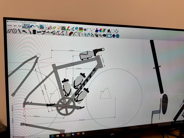 Sur le positionnement du cycliste, CMT travaille avec Retül et c’est donc Carole qui s’en occupe. Retül fait aujourd’hui référence en la matière, puisque le système global inclut la façon dont ce cycliste pédale réellement avec une visualisation en 3D de son coup de pédale. Les perturbations du cycle de pédalage peuvent ainsi être détectées puis corrigées en jouant sur les longueurs et les angles des différents tubes. Une fois la position du cycliste réalisée, celle-ci est transférée sur l’interface Bike Cad, un logiciel très puissant permettant de voir à l’écran le cycliste positionné, puis de « jouer » sur tous les angles et vérifier certains aspects permettant par exemple de s’assurer que le pied ne touche pas pour une géométrie et une pointure du cycliste données.